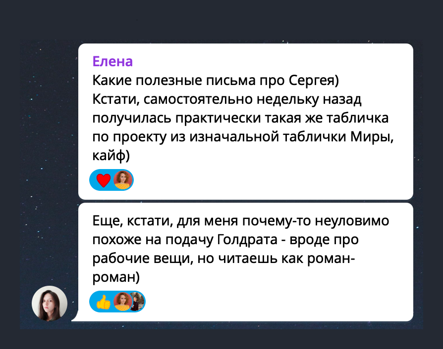 Проблемы Сергея — на внутрипроектном уровне. На наш взгляд, ему важно замедляться в начале проекта и планировать как последний душнила. Не больше, чем надо — но сильно въедливее, чем ему хочется, когда он рвется в бой в первые дни проекта