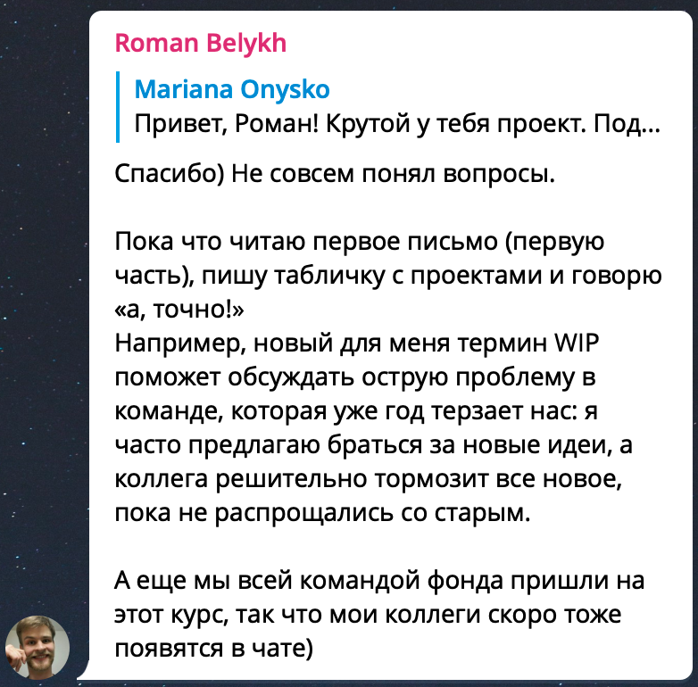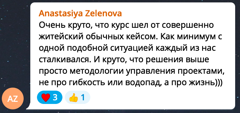 Однажды Наташа завалила большой и важный личный проект. Теория не помогла ей стать хорошим проджектом, а этот провал — да. Через боль она переосвоила классический проектный менеджмент. Потом на него отлично легли фреймворки из эджайла и затанцевали вместе